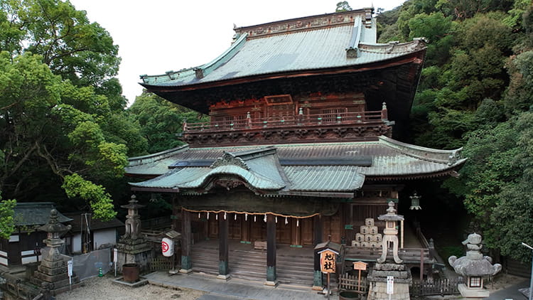 Le sanctuaire Kotohira-gu de la préfecture de Kagawa, également connu sous le nom de « Konpira-san », est situé sur la pente du mont Zozu. Il abrite la divinité Omononushi no Kami et l’esprit déifié de l’empereur Sutoku. Depuis des siècles, les pèlerins viennent y prier pour obtenir la réussite dans l’agriculture, le commerce, la médecine et la navigation. Aujourd’hui encore, les visiteurs peuvent emprunter le même chemin de pèlerinage.