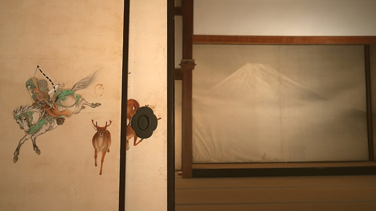 무라타 단료의 그림이 있는 두 개의 방도 이와 비슷한 몰입 효과를 일으킵니다. 한쪽 방에는 말 위에 올라탄 전사들의 모습이, 다른 쪽 방에는 안개 낀 후지산 풍경이 그려져 있어 두 방 사이의 칸막이를 열면 언덕에서 사냥 모임을 하는 그림이 완성됩니다.