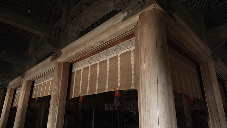 내부 성소 주변에서 이러한 전환의 흔적을 찾아볼 수 있습니다. 계단 양옆에 선 기둥은 본래 연단이 있던 가장자리에 위치해 있고, 그 연단을 설치하기 위해 일부 목재가 깎여 나간 흔적이 남아 있습니다. 또 다른 흔적은 예술 작품에서 찾아볼 수 있습니다. 신전의 본래 디자인에는 본전을 둘러싼 수평보 사이에 십이지 동물을 새긴 조각이 포함되어 있었지만, 자세히 보면 11가지 동물만 볼 수 있습니다. 없어진 동물(닭)은 내부 성소의 지붕으로 대체되었고, 현재 다락방에 보관되어 있습니다.
