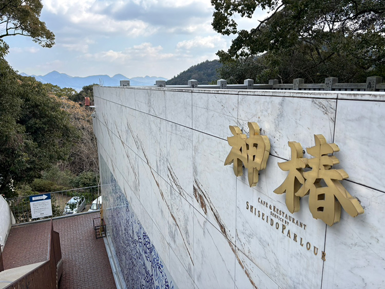 建物は斜面の下に埋め込むように造られており、参道からも店内からも、広々とした景色を眺めることができます。